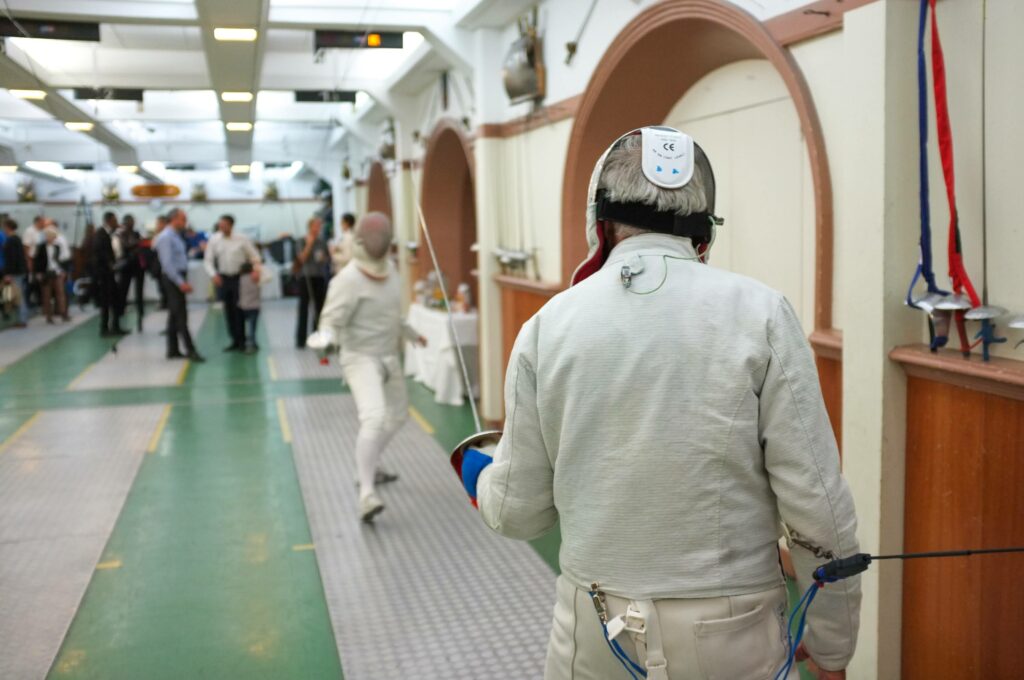 Vers 19h, place aux adultes du Cercle. L’atmosphère est restée détendue et amicale, fidèle à l’esprit du club. Le Président de la salle d’armes, le général Bernard Aussedat, a pris la parole pour souhaiter à tous une excellente saison d’escrime. Il en a également profité pour présenter le nouveau maître d’armes, Maître Hendrix Maturell Andino, accueilli avec enthousiasme par les tireurs présents. Tout ceux qui sont passés à la leçon avec le maître connaissent déjà sa rigueur et sa bienveillance. Les autres ont découvert un parcours prestigieux de Cuba à Paris (en passant par Levallois) raconté humblement.